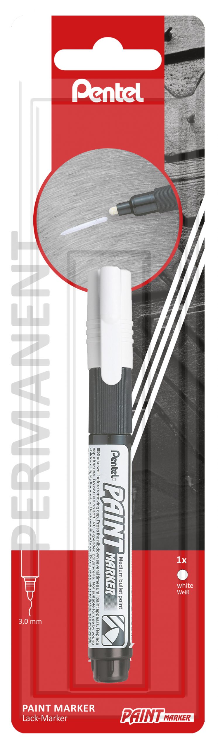 With high opacity, excellent colour brightness and pigmented ink in 15 vibrant colours, the Pentel Paint Marker is also ideal as a versatile outdoor marker for DIY, hobby and garden use – as well as many kinds of creative applications. The xylene-free ink and tough, medium-weight fibre tip in this marker make precise marking easy even on surfaces that may be slightly oily, dusty, wet, soiled or dark-coloured. This paint marker ink for universal use does not bleed, dries fast, and is the ideal choice for use in a wide range of quality checks and testing applications for parts and work component . The glossy, paint-like ink adheres to any non-porous surface and offers a high level of coverage on metallic surfaces, plastic, glass and rubber.