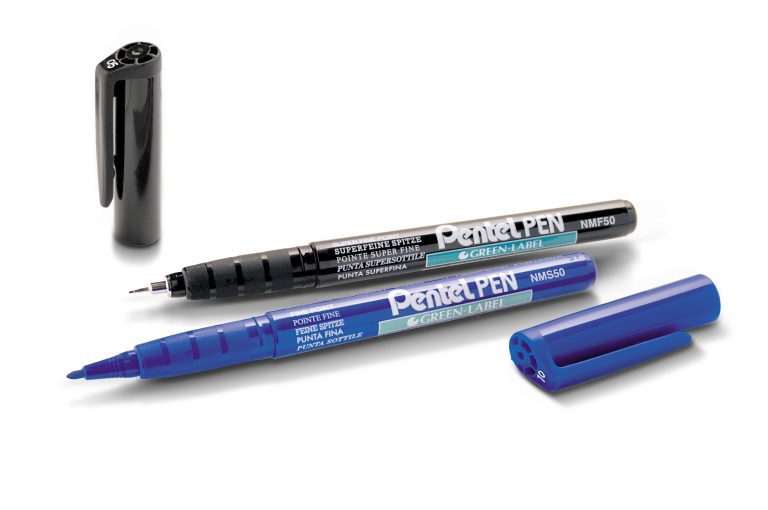 A permanent classic in the Pentel range since the early 1990s, these permanent markers contain a particularly gentle, alcohol-based ink. The markings made by the Pentel Pen are extremely smudge-proof and water-resistant, as well as permanent on many plastics, but also on a wide variety of household surfaces and materials such as cardboard, paper, metal and processed and treated wood.